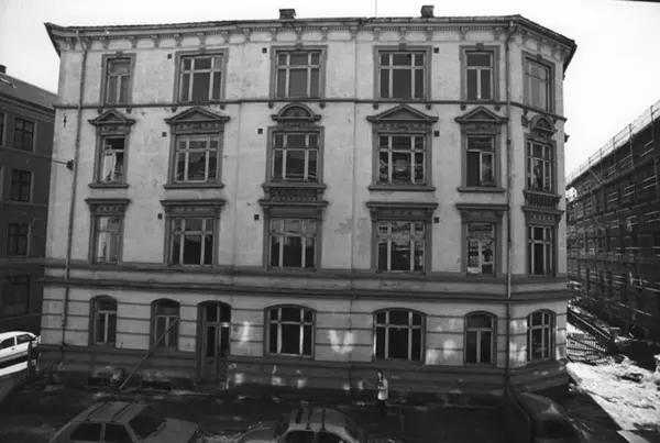 Fasade på bygård. Fotografiet er fra prosjektet og boka ''Oslo-bilder. En fotografisk dokumentasjon av bo og leveforhold i 1981 - 82''. Kontakt Samfoto ved ev. bestilling av kopier.