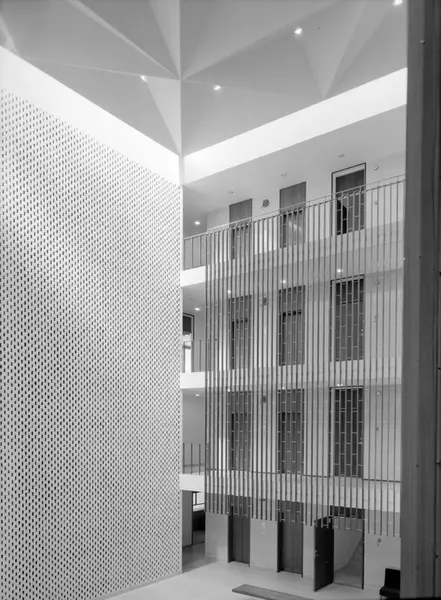Arkitekturfoto av den Amerikanske ambassade i Oslo. Ambassaden er tegnet av den Finsk-amerikanske arkitekten Eero Saarinen og sto ferdig i 1959.