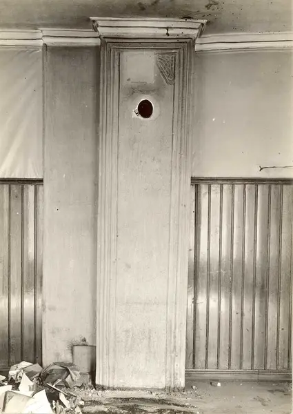 Tollbugata 13, Oslo. Interiør med brannmur eller pipe. Vær. H. 2. etg..