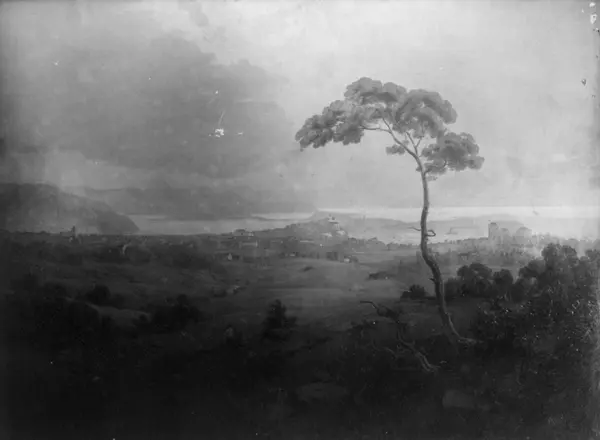 Oslo, 1941. Oljemaleri med utsikt over byen og fjorden. "Den Kulturhistoriske Udstilling i Kristiania 1901" på NF.