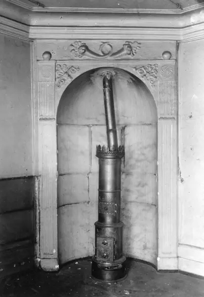 Prinsens gate 8, Oslo. Brannmur med vedovn.
