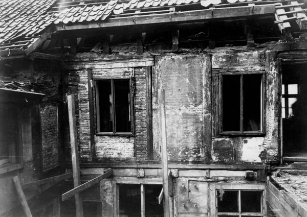 Tollbugata 14, Oslo. Hus under riving. Nå på Norsk Folkemuseum. Håndtverkergården/Bokbindergården.
