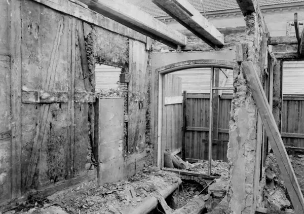 Tollbugata 14, Oslo. Hus under riving. Interiør. Nå på Norsk Folkemuseum. Håndtverkergården/Bokbindergården.