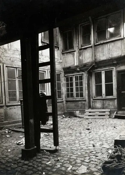 Tollbugata 14, Oslo. Hus under riving. Nå på Norsk Folkemuseum. Gårdsrommet. Håndtverkergården/Bokbindergården.