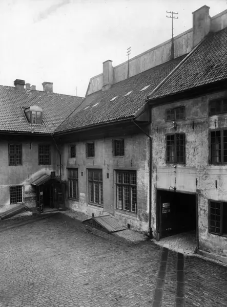 Dronningens gate 15, Oslo. Det gamle Finansdepartement. Gårdsrom. Bygningen står nå på Norsk Folkemuseum.