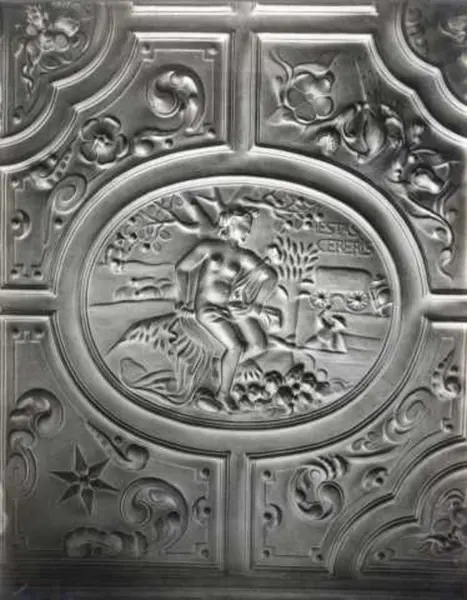 Dronningens gate 15, Oslo. Det gamle Kirkedepartement. Detalj av stukktak. Byningen er nå på Norsk Folkemuseum.