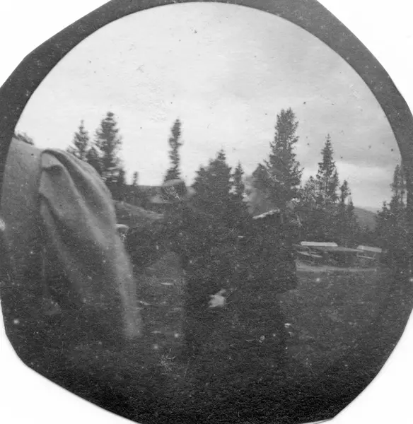 Olga Schøll (Schiøll?) i skogen ved serveringssted, Golå, Sør-Fron.