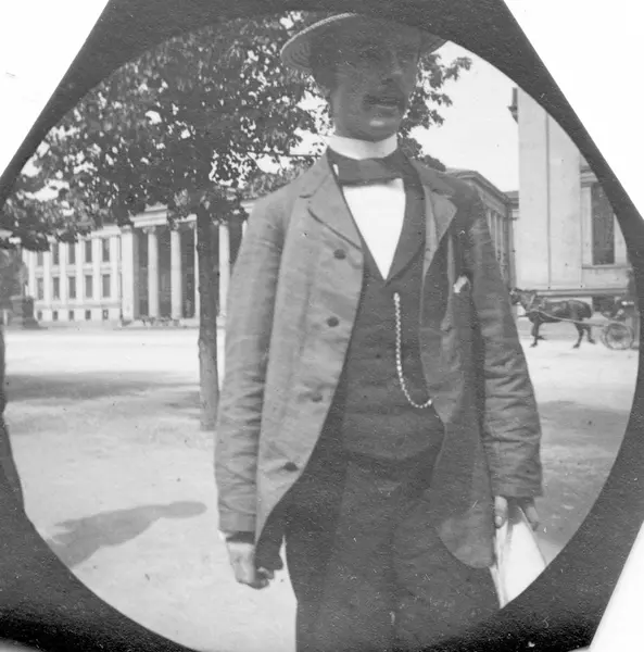 Fredrik Carl Mülertz Størmer (1874-1957) var matematiker og nordlysforsker. Han ble cand. real. i 1898. Fra 1903 var han professor i matematikk ved Universitetet i Oslo, en virksomhet han opprettholdt til 1946. Som student fikk han i 1893 tak i et detektivkamera som kunne skjules under vesten med objektivet ut gjennom et knapphull og med snor ned i en bukselomme. Slik fotograferte han folk han møtte på Karl Johan i 1890-årenes Christiania.