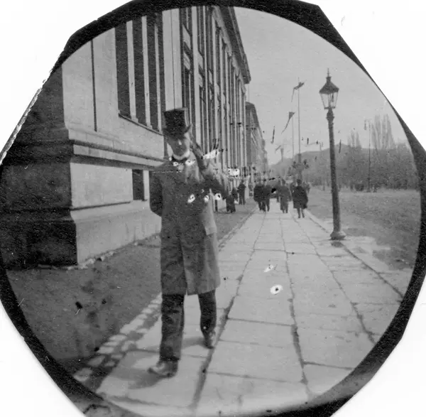 Fredrik Carl Mülertz Størmer (1874-1957) var matematiker og nordlysforsker. Han ble cand. real. i 1898. Fra 1903 var han professor i matematikk ved Universitetet i Oslo, en virksomhet han opprettholdt til 1946. Som student fikk han i 1893 tak i et detektivkamera som kunne skjules under vesten med objektivet ut gjennom et knapphull og med snor ned i en bukselomme. Slik fotograferte han folk han møtte på Karl Johan i 1890-årenes Christiania.