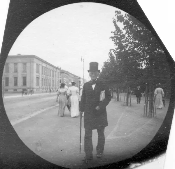 Fredrik Carl Mülertz Størmer (1874-1957) var matematiker og nordlysforsker. Han ble cand. real. i 1898. Fra 1903 var han professor i matematikk ved Universitetet i Oslo, en virksomhet han opprettholdt til 1946. Som student fikk han i 1893 tak i et detektivkamera som kunne skjules under vesten med objektivet ut gjennom et knapphull og med snor ned i en bukselomme. Slik fotograferte han folk han møtte på Karl Johan i 1890-årenes Christiania.