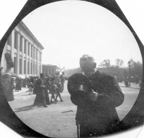 Fredrik Carl Mülertz Størmer (1874-1957) var matematiker og nordlysforsker. Han ble cand. real. i 1898. Fra 1903 var han professor i matematikk ved Universitetet i Oslo, en virksomhet han opprettholdt til 1946. Som student fikk han i 1893 tak i et detektivkamera som kunne skjules under vesten med objektivet ut gjennom et knapphull og med snor ned i en bukselomme. Slik fotograferte han folk han møtte på Karl Johan i 1890-årenes Christiania.