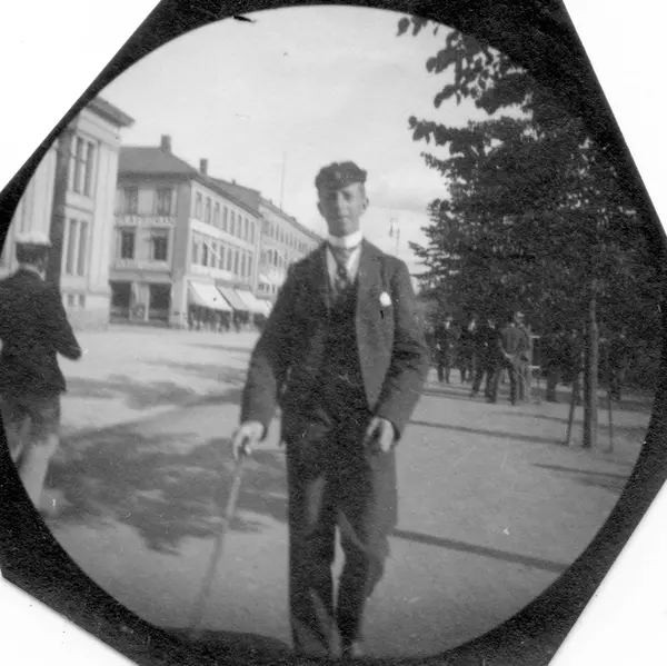 Herman Reimers, senere legasjonssekretær i Paris, spaserer i Studenterlunden, Karl Johans gate, Oslo..