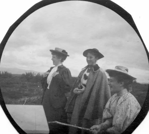 Fra venstre frk. Margit Holm, frk. Ingeborg Willumsen og frk. Margit Willumsen i fjellandskap.