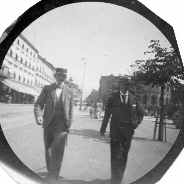 Fredrik Carl Mülertz Størmer (1874-1957) var matematiker og nordlysforsker. Han ble cand. real. i 1898. Fra 1903 var han professor i matematikk ved Universitetet i Oslo, en virksomhet han opprettholdt til 1946. Som student fikk han i 1893 tak i et detektivkamera som kunne skjules under vesten med objektivet ut gjennom et knapphull og med snor ned i en bukselomme. Slik fotograferte han folk han møtte på Karl Johan i 1890-årenes Christiania.