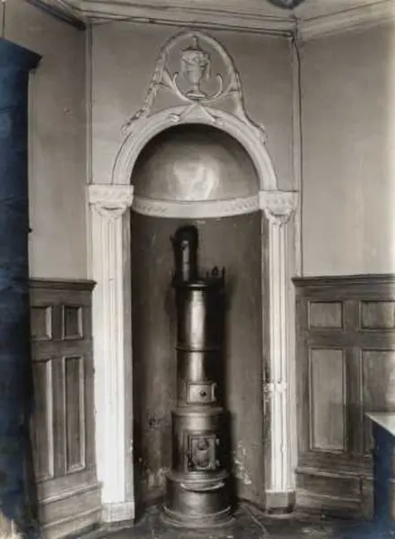 Nedre Slottsgate 1, Oslo. Brannmur med vedovn.