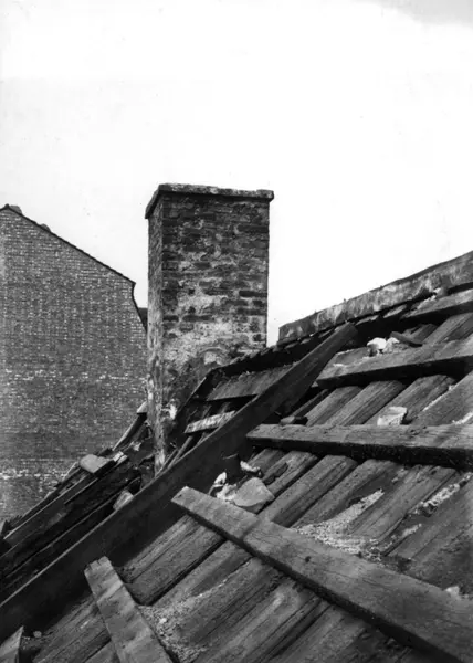 Dronningens gate 15, Oslo. Det gamle Finansdepartement. Tak og pipe. Riving.