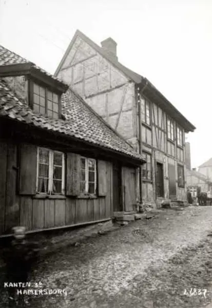 Kanten 3b, Hammersborg, Oslo. Små hus ved gate, tre- og bindingsverk.