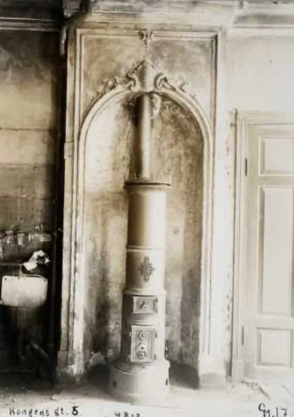 Kongensgate 5, Oslo. Interiør, vedovn.