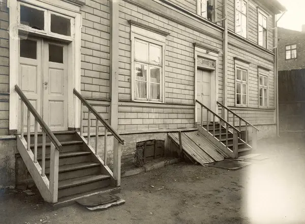 Bakkegaten 23, Oslo. Fra bakgården, med kjellerlem, inngangsdører og trapper.