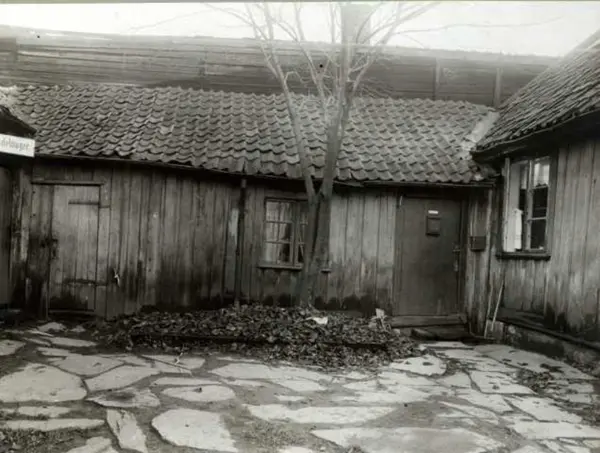 St. Halvards gate 20, Oslo. Lavt trehus med gårdsplass.