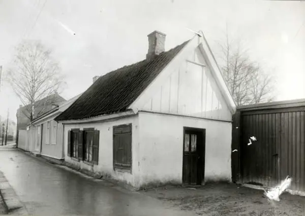 St. Halvards gate 75, Oslo. Hvitt lite trehus, mot gata.