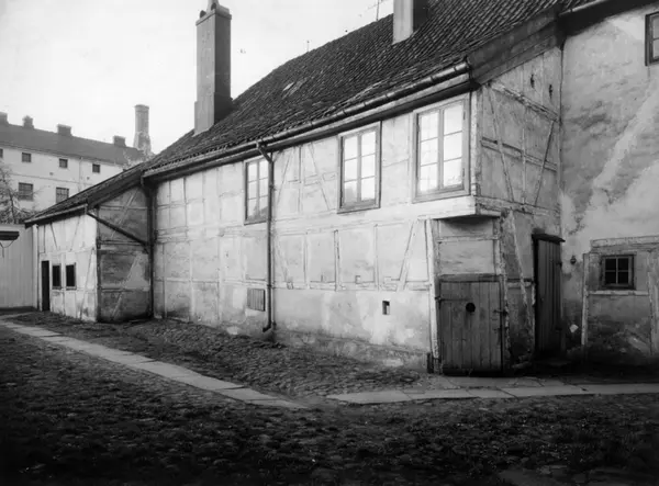 Storgata 33, Oslo. Tukthuset. Gårdsplass med bindingsverkshus.