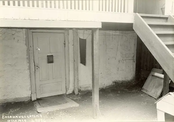 Kjellerdør og trapp i Enerhauggata 4, Oslo. 1924.
