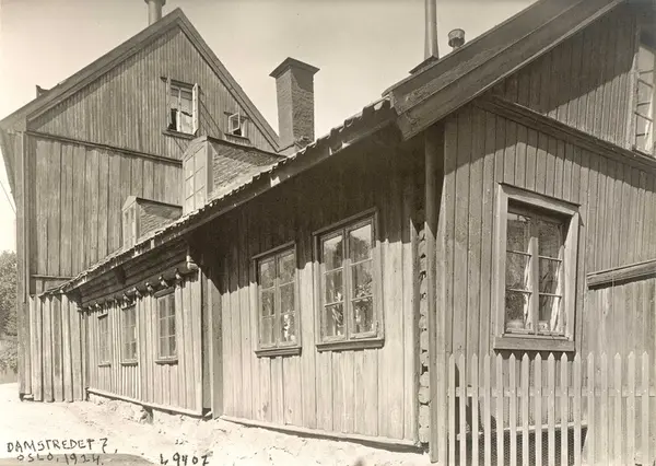 Damstredet 7, Hammersborg, Oslo. Bolighus fotografert fra gata. 1924.