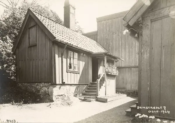 Lite hus i bakgården til Damstredet 7, Hammersborg, Oslo. 1924.