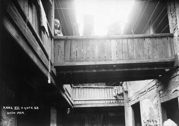 Karl XIIs gate 28, Oslo, 1924. Bakgård med bru.