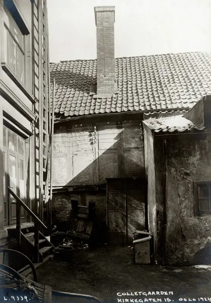 Colletgården, Kirkegata 15, Oslo. Fra bakgården. Colletgården er nå på Norsk Folkemuseum.