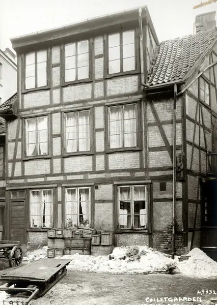 Colletgården, Kirkegata 15, Oslo. Fra gårdsrommet med slede. Colletgården er nå på Norsk Folkemuseum.