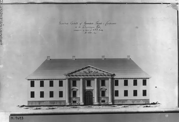 Dronningens gate 15, Oslo. Tegning av Christiania Katedralskole, Kirkedepartementet.