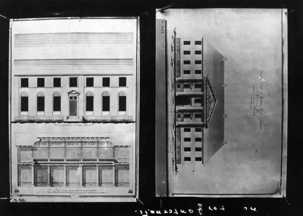 Dronningens gate 15, Oslo. Tegning av Christiania Katedralskole, Kirkedepartementet.