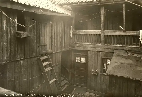 Vinkelgaten 10, Pipervika, Oslo. Gårdsrom med svalgang.