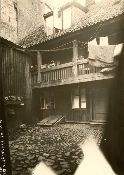 Vinkelgaten 10, Pipervika, Oslo. Gårdsrom med svalgang.