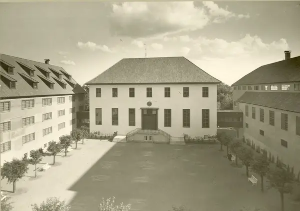Torget med hovedbygg, bygning for bygdekultur og bygning for systematisk samling , Oslo høsten 1934.