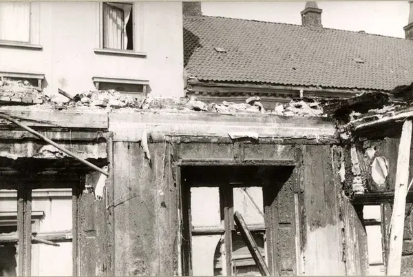 Rester av vegger til Paleet, Fred Olsensgt.6, Oslo. Etter brannen i 1942.