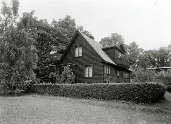 Svalbardveien 16 b, Oslo. Johanne Dybwads hjem. Trehus i hage.