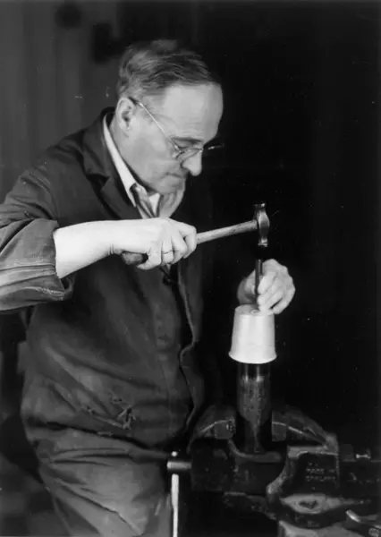 Fra en serie fotografier som viser arbeid ved gullsmedverkstedet J. Tostrup i Oslo, 1951.