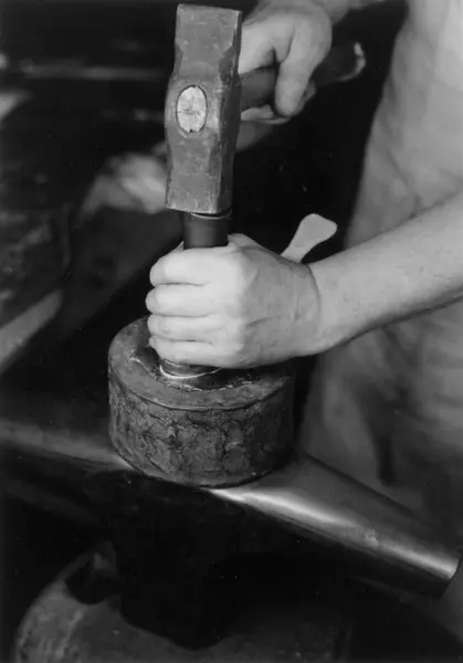 Fra en serie fotografier som viser arbeid ved gullsmedverkstedet J. Tostrup i Oslo, 1951.