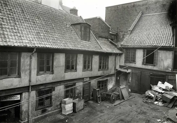 Collett-Cappelengården, Kirkegata 15, Oslo. Bygget i slutten av 1600-tallet og kjøpt av kommerceråd James Collett i 1703. Nå på Norsk Folkemuseum. Eksteriør, gårdsrom.
