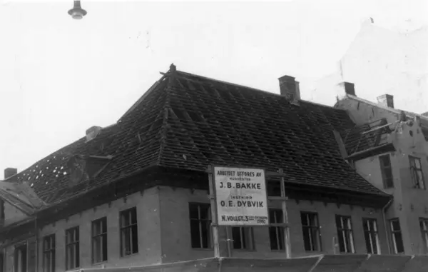 Collett/Cappelengården, Kirkegata 15, Oslo under rivingen i 1939. Bygget i slutten av 1600-tallet og kjøpt av kommerceråd James Collett i 1703. Nå på Norsk Folkemuseum.