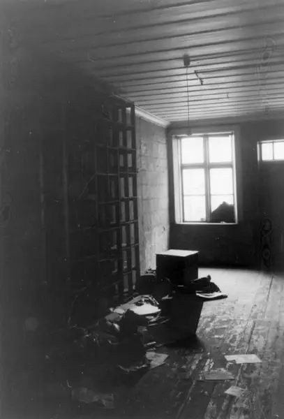 Collett/Cappelengården, Kirkegata 15, Oslo under rivingen i 1939. Bygget i slutten av 1600-tallet og kjøpt av kommerceråd James Collett i 1703. Nå på Norsk Folkemuseum.