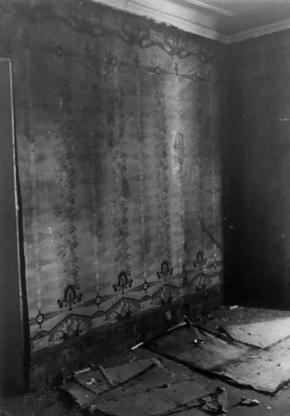 Collett/Cappelengården, Kirkegata 15, Oslo under rivingen i 1939. Bygget i slutten av 1600-tallet og kjøpt av kommerceråd James Collett i 1703. Nå på Norsk Folkemuseum.