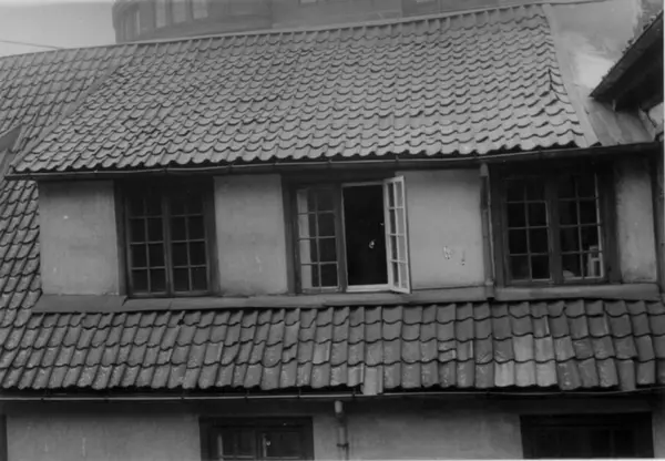 Collett/Cappelengården, Kirkegata 15, Oslo under rivingen i 1939. Bygget i slutten av 1600-tallet og kjøpt av kommerceråd James Collett i 1703. Eksteriør tak.Nå på Norsk Folkemuseum.