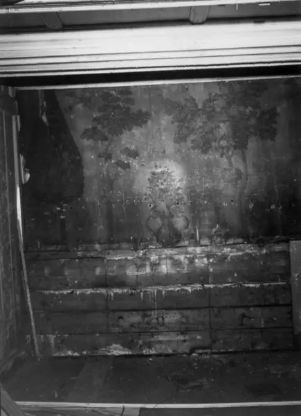 Rødfyllgata 20, Oslo 1954. Under riving. Vegg etter at strie og en del av brystpanelet var fjernet.