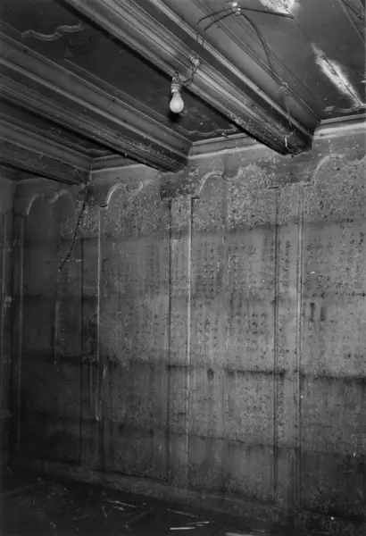 Rødfyllgata 20, Oslo 1954. Under riving. Vegg og tak, interiør.