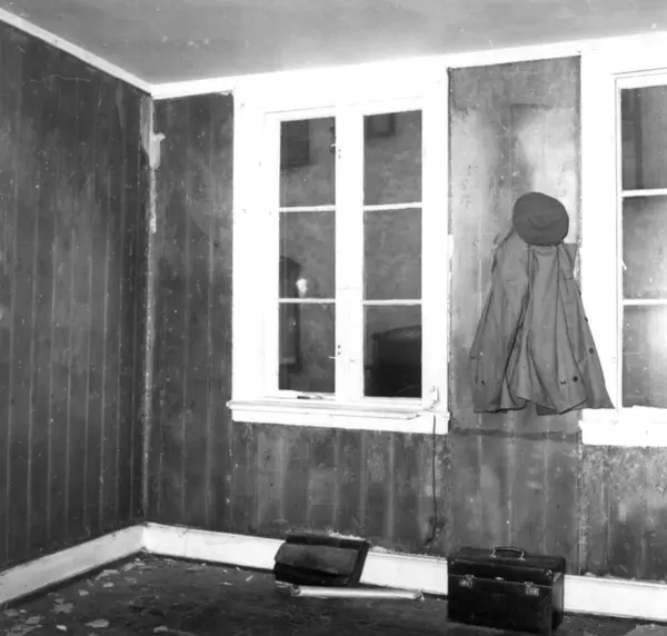 Fra rivingen av Holmens gate 5 i Oslo i Pipervika.Hele denne gata forsvant med Rådhusreguleringen. Bakgården i Holmens gate 5 er bevart på Norsk Folkemuseum, som bygning nr. 231.