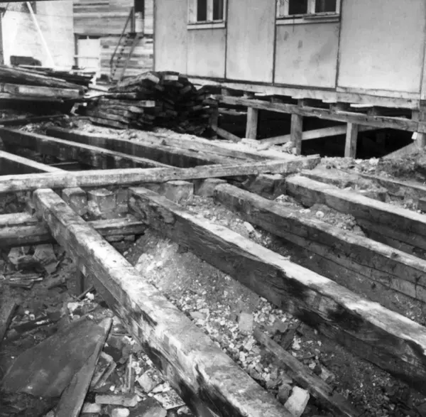 Fra rivingen av Holmens gate 5 i Oslo i Pipervika.Hele denne gata forsvant med Rådhusreguleringen. Bakgården i Holmens gate 5 er bevart på Norsk Folkemuseum, som bygning nr. 231.